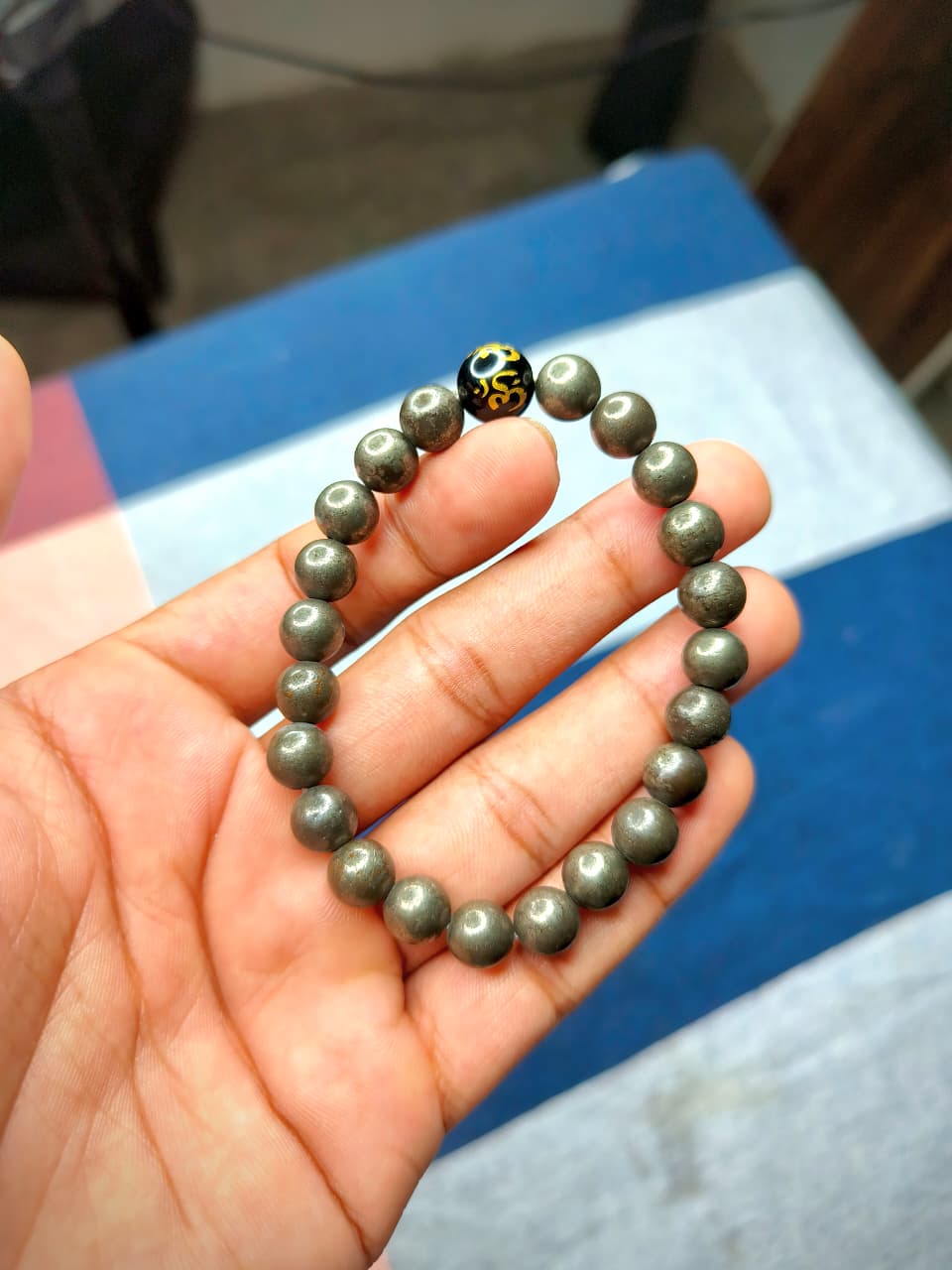 - 💎 Natural Pyrite beads + 🧿 Evil Eye charm